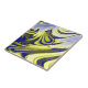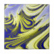Um desenho abstrato originado de espirais azuis, amarelas e brancas que produzem água fluvial.