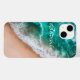 Onde as águas turquesas oceânicas encontram areia de praia na costa oceânica. Eu apavorado o design de feijão tropical de verão.