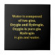 O texto amarelo sobre fundo preto dá uma reviravolta humorística na composição da água, substituindo hidrogênio e oxigênio por "Hidrogina" e "Oxigênio". Este trocadilho brincalhão sugere que Oxigin é gin puro, e Hidrogina é gin e água.