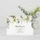 Desenho de cartão elegante com delicadas flores brancas e folhas verdes em aquarela, divisor floral, em um fundo branco. No verso, flores brancas, divisor floral. Use a ferramenta Personalizar para adicionar suas informações, alterar fontes e cores de fontes. Para itens correspondentes, visite minha Coleção de Flores Brancas Delicadas.