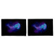 Água-viva grande, azul, desenhada artisticamente, brilhante, brilhante, com longos tentáculos sobre fundo preto com bioluminescência roxa. Água-viva luminosa.