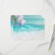 Cartões de RSVP para Casamento | Tema Casamento na Praia. Belas águas oceânicas límpidas e cintilantes brilhando ao sol, espuma branca na areia limpa da praia com uma folha de palmeira e flor rosa claro adornam o canto Casual ou formal, para um casamento na praia ou ilha de destino