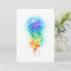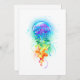 Água-viva grande, iridescente, desenhada artisticamente, brilhante, com longos tentáculos em branco, pintada sobre fundo de aquarela multicolorido. Água-viva arco-íris.