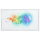 Água-viva grande, iridescente, desenhada artisticamente, brilhante, com longos tentáculos em branco, pintada sobre fundo de aquarela multicolorido. Água-viva arco-íris.