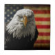 Pintura a óleo de uma majestosa águia careca contra uma foto de uma batalha angustiada bandeira americana. Imagem patriótica excelente.