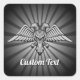 Duas águias com cabeça, símbolo de poder dos imperadores bizantinos. Cor de fundo personalizada. Texto personalizado.