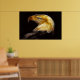Apresentando um fôlego considerando uma águia careca com o poder brilhando dele e um fundo preto.esta é uma bela foto nesta poster