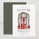 Aguinaldo de anúncio de mudança de Decking New Halls. Porta em aquarela vermelha festiva com decoração de Natal.