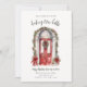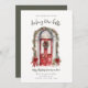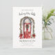Aguinaldo de anúncio de mudança, Decking New Halls. Porta em aquarela vermelha festiva com decoração de Natal.