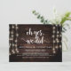 Ah sim, fizemos, Anúncio de Casamento / Convite de Casamento, em Madeira Rústica de Fazenda, design de Luzes de Corda. Isso é perfeito para o seu casamento e festa de celebração pós-casamento. Adicione seus detalhes em fonte / letra correspondente.