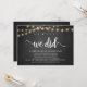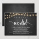 ah sim, fizemos, Anúncio de Casamento Furtivo / Convite de casamento, em quadro-negro de fazenda rústica, design de luzes de corda. Isso é perfeito para o seu casamento e festa de celebração pós-casamento. Adicione seus detalhes na fonte / letra correspondente.