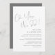 Este é o convite de festa de casamento às escondidas, com design de letra minimalista / minimalista em cinza escuro (oh sim, fizemos)