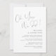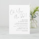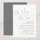 Este é o convite de festa de casamento íntimo, com design minimalista / script cinza escuro (oh sim, fizemos)