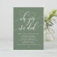 Celebre seu casamento íntimo com este deslumbrante cartão de anúncio de fuga "Oh Sim, Nós Fizemos", apresentando caligrafia moderna elegante e design minimalista. Este sofisticado cartão verde sálvia e branco é perfeito para compartilhar suas notícias especiais com familiares e amigos após a cerimônia de fuga.