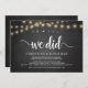 ah sim, nós fizemos, Anúncio de Casamento Furtivo / Convite de casamento, em quadro negro rústico de fazenda, design de luzes de corda. Isso é perfeito para o seu casamento e festa de celebração pós-casamento. Adicione seus detalhes na fonte / letra correspondente.