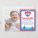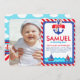 Ahoy, veleja para uma festa de aniversário náutica. Anchors longe, vamos veleja para celebrar o seu pequeno partido náutico com os nossos convites de aniversário náuticos. Este convite para aniversários de velejo apresenta um veleiro moderno e ancora em faixas vermelhas e azuis. Personalize estes convites de aniversário com a fotografia do seu filho. Todos a bordo do veleiro para uma diversão no tema de aniversário à beira-mar. Nossa modelo náutica é perfeita para seus convites de aniversário, convites de festas de praia, festa de aniversário de piscina de verão.