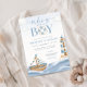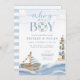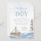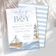 Convide convidados para comemorar a chegada iminente do seu bebê com o nosso Convite para Chás de fraldas Náuticos. Esta design de aquarela apresenta um veleiro navegando no oceano, um farol à distância, e um belo céu azul com nuvens lisas.