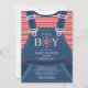 Ahoy, é um convite para Chás de fraldas náuticos com o par mais bonito de macacões para bebês. Convite de chá de fraldas de Meninos Únicos para um tema de chá de fraldas náutico.