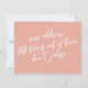 Nesta peça, a fonte de script escrita à mão foi usada para criar gráficos que retratavam as palavras "novo endereço. ainda vivendo fora das caixas. não julgue." na frente, e "mantenha-se em contato" no verso. O fundo do coral pode ser alterado para qualquer cor que você preferir. Por favor, responda a quaisquer solicitações especiais ou personalize a assistência. 100 //