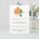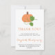 Aimentando a mãe para ser um Cartões de agradecimentos plano de abóbora. Obrigado por celebrar conosco a chegada da pequena de Elizabeth Montgomery. Seguindo o tema, a nota de agradecimento apresenta um adorável design de abóbora e os carregares traseiros das cores da abóbora em um padrão listrado. Diga aos seus participantes o quanto agradeceram pela sua presença e como apreciam profundamente o seu profundo dom. Avise-os que o seu amor e apoio significa o mundo para vocês.