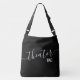 Um grande saco de totas preto, personalizado moderno e chic, com texto personalizado editável lendo "saco de teatro" é uma forma excelente de manter seus scripts, props e livros organizados e prontos para ensinar ou dar aulas, praticar jogos e editar scripts. Cores, texto e fontes são todos editáveis.