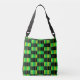 Bolsa as suas coisas neste saco de corpo verde e preto com um padrão de xadrez de abstrato e detalhes pretos contrastantes. Saco de impressão geométrica divertido apresenta um padrão estranho, incluindo damas e listras em vários tons de verde e preto.