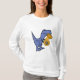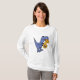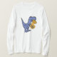 Dinossauro azul engraçado bonito do t-rex dos desenhos animados que joga o design da camisa ou da camisola da trompa francesa. É divertimento e cheio da personalidade e pode adicionar o texto feito sob encomenda ao pedir.