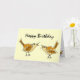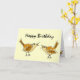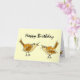 Cartoon divertido cartão de aniversário verde tem duas mulheres conversando por fora e diz Parabéns. Na dentro diz: Um passarinho me disse.
