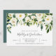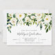 O convite para festa de formatura floral Chic apresenta uma borda superior de rosas de marfim e peônias brancas com folhagem botânica e verde. Personalize com seus detalhes de festa de formatura no moderno roteiro escrito à mão e na letra de sans serif tradicional. Convites invertendo para joias ricas em verde-jasper.