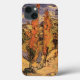 Duas Árvores à Beira de uma Estrada nas Colinas de Vincent van Gogh é uma antiga pintura de paisagem natural de arte fina impressionista pós-impressionista. Uma cena da estação de outono com duas árvores à beira de uma montanha com uma estrada sinuosa e nuvens rodopiantes no céu. belas cores de outono.
