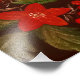 Uma pintura no estilo Petrykivka apresenta flores e frutos vermelhos vibrantes, representados com padrões intrincados e pinceladas delicadas. As flores são grandes e simétricas, cercadas por elementos florais menores e folhas ornamentais. As bagas, prováveis aglomerações de viburno, são destacadas com detalhes refinados, dando-lhes uma aparência semelhante à vida, mas decorativa. A composição é organizada de forma tradicional ucraniana, apresentando contrastes brilhantes e um equilíbrio harmonioso de cores em fundo branco ou claro. A trabalho de arte exemplifica a elegância e a tradição popular de Petrykivka, celebrando a natureza e o patrimônio ucraniano.