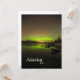Decorado com a imagem da aurora borealis e as luzes da comunidade de Bodenburg Butte refletindo sobre o rio Knik no Alasca. Também tem texto que diz "Alaska Sigh...." Por Ted Raynor