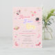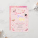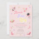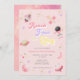 Este convite para o 4º aniversário apresenta texto retrógrado da década de 70, cores rosa e roxo e ilustrações de espaço. As ilustrações são planetas, estrelas e foguetes. As costas são cor-de-rosa com estrelas douradas, fazer este o convite perfeito para celebrar o seu pequeno astronauta.