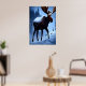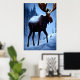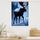 É inverno e os alces caminham na neve com a árvore na floresta ao fundo. Esta é uma arte gerada por IA.