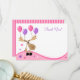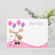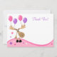 Cartões de agradecimentos lisos bonitos e do divertimento que caracterizam um alce dos desenhos animados com os balões cor-de-rosa e roxos amarrados aos chifres e cercados por estrelas. Combina o mesmo convite da festa de aniversario de meninas do estilo. Para pedidos ou a ajuda feita sob encomenda com personalização por favor use a relação do contato da loja.