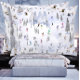 Uma vila de esqui alpino, bonita e detalhada, pintada a aquarelas, com montanhas de neve, chalés e lojistas, esquiadores, visitantes construindo nevões, moradores se juntando, crianças brincando, cachorros latindo e sinos de Natal a gritar neste padrão ilustrado de feriado de inverno neste conjunto de travesseiros.