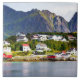 Aldeia Lofoten Norway Reine, sob o sol do céu azul - Aldeia Reine sob o sol do céu azul, com casas típicas de rorbu usadas por pescadores ou turistas que moram na noruega.
