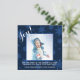 Este cartão festivo é uma bela maneira de enviar Cartões de natal. Apresenta flocos de neve azuis num fundo de marinho com uma imagem quadrada no centro. A legenda diz: Joy! Há espaço para escrever uma breve saudação. A parte de trás é branca com flocos de neve azuis pálidos para que você possa escrever uma mensagem pessoal se você escolher.