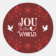 Um adesivo de Natal vintage elegante e moderno apresenta flores de poinsettia e tema de grinalda botânica de ramos de pinheiro para representar o melhor das festas. É inspirado pelas canções de Natal do passado das letras "Joy to the World" e também é uma ótima maneira de expressar o Espírito Natalino para aqueles que você ama. Criado com letras e ilustrações desenhadas de forma exclusiva para aqueles que amam estilos únicos e inovadores! Desenhado por Katrina Sutton.