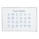 Letras gregas minúsculas e maiúsculas com seus nomes. Objeto vetorial com cores personalizadas para título, letras e nomes de letras. Cor de fundo personalizada. Texto personalizado no verso.