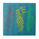 Este azulejo cerâmico de algas marinhas costeiras apresenta 3 cordões de algas em vermelho, amarelo e verde sobre um fundo oceânico ondulado de tartaruga-de-água lacrimejada.