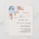 Para um duche de noiva moderno. Um fundo bege. Decorado com uma rosa azul empoeirada, grama de pampas. Personalize e adicione um nome e detalhes da parte. Texto: Algo azul antes de mim. 1 folha = 1 chá de panela impresso borda a borda.