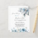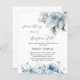 Um fundo branco elegante, decorado com flores azuis. Personalize e adicione um nome e detalhes da parte. Texto: Algo azul antes de mim. 1 folha = 1 chá de panela impresso borda a borda.