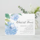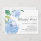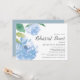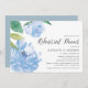 O janto Elegante de ensaio floral apresenta folhas verdes e flores de peônias de cor-de-água em blues macio. Personalize com seu ensaio de cerimônia e ensaie os detalhes do janto alinhados à direita.