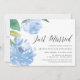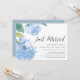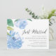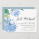 Os convites florais postes para o casamento floral destacam pedras aquáticas e verde em azul pálido. Personalize com seus detalhes de brunch de casamento alinhados à direita, embelezados com "recem casados" no roteiro de caligrafia. Convites inverso a azul-claro empoeirado sólido.