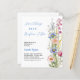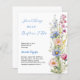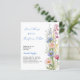 Um fundo branco chic. Decorado com flores silvestres em rosa, azul, amarelo. Personalize e adicione o nome da noiva a ser e os detalhes da festa. Texto: Algo azul antes de mim. 1 folha = 1 convite impresso de borda a borda.