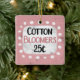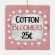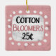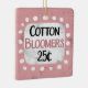 "Cotton Bloomers 25 Centavos" é um design de texto divertido com forma de sotaque branca rodeado por pontos brancos texturizados.