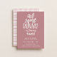 Um convite de aniversário bonito de "coelhinho" de rosa empoeirado. Tipografia branca com sotaque de ouvido coelho e padrão de suporte do estilo de basketweave desenhado à mão.
