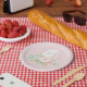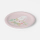 algumas placas de festa de aniversário de coelho com rosa e floral