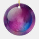 Contra um pano de fundo de nuvens reais, azuis e intricadas, cor-de-rosa quente, como galáxias distantes, é um solteiro de vidro liso com um dentro fractal robusto e suspenso.